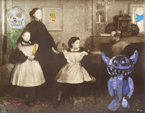 Monster Drawing 9, 2010, pencil, watercolor, gouache, ink on old photograph (Degas), 28 x 35 cm