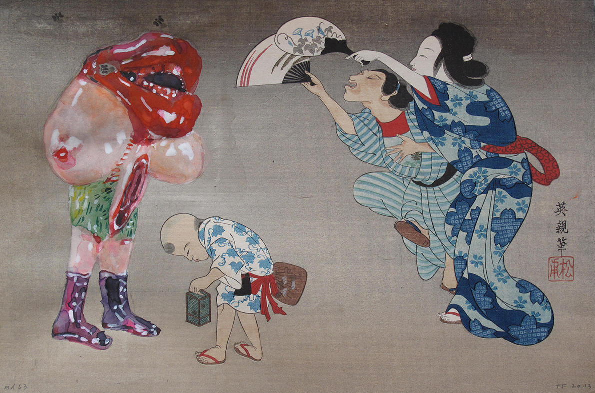 Md 63 (Visitor 2), 2013, Pencil, Watercolor, Gouache on Japanese print , 20 x 30 cm