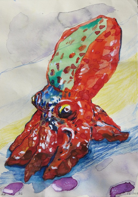 Md 66 (Small Octopus), 2013, Pencil, Color Pencil, Watercolor, Gouache, on Children’s Drawing, 21 x 15 cm