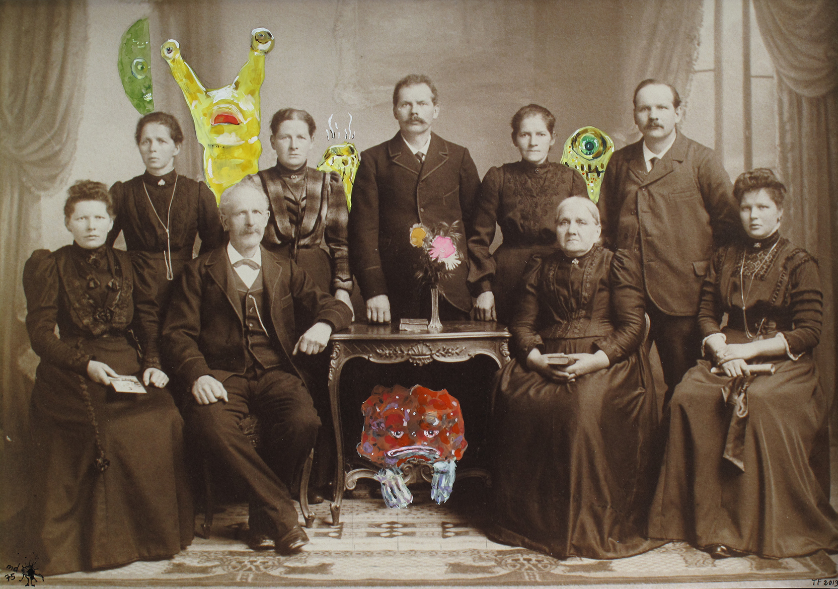 Md 75 (The Family), 2013, Pencil, Watercolor, Gouache, Ink on Photograph, 34 x 48.5 cm