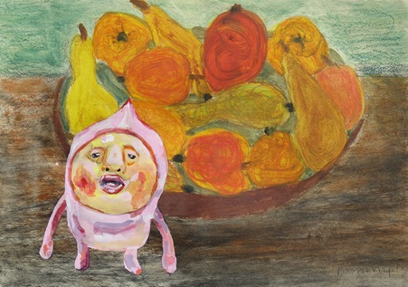 Md 83 (Still Life with Monster Baby), 2013, Pencil, Oil Crayon, Watercolor, Gouache on Children’s Drawing, 21 x 29.5 cm